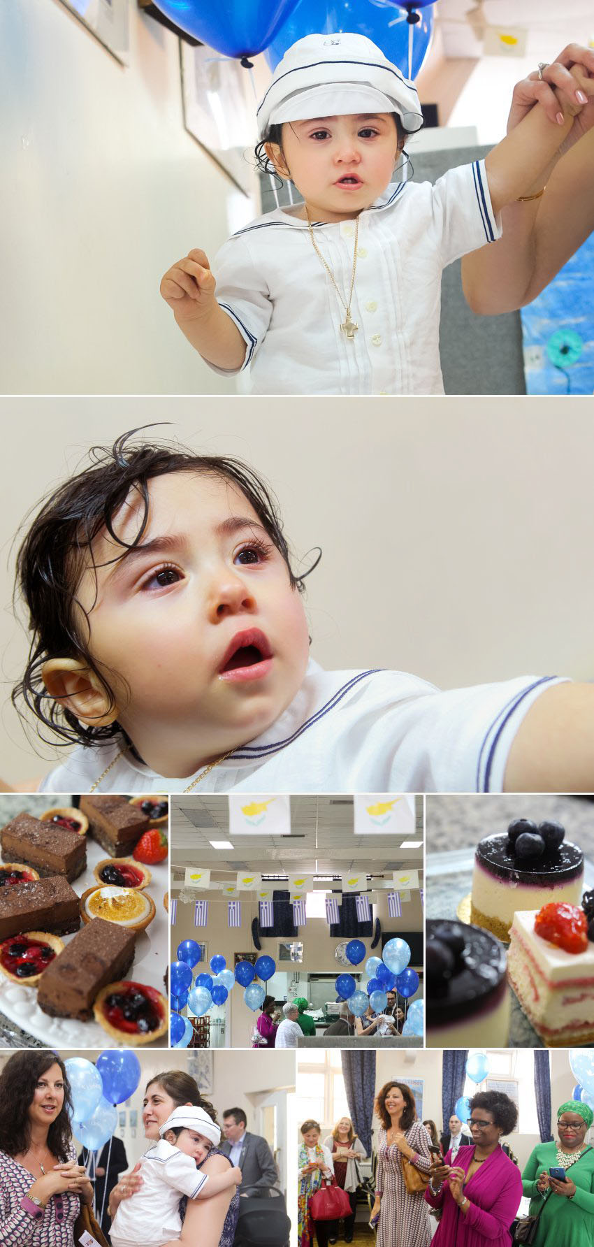 The family had decorated a nearby hall with blue balloons and Greek flags for the post-christening reception. The cross on the Greek flag represents the importance of the church in the Greek culture, so it was a fitting decoration for an auspicious day. Clearly tiring after all the excitement, Vasilis was happy to be back in his mother’s arms. We took a few final shots of family and friends, capturing the sense of love and happiness that surrounds this beautiful boy.
